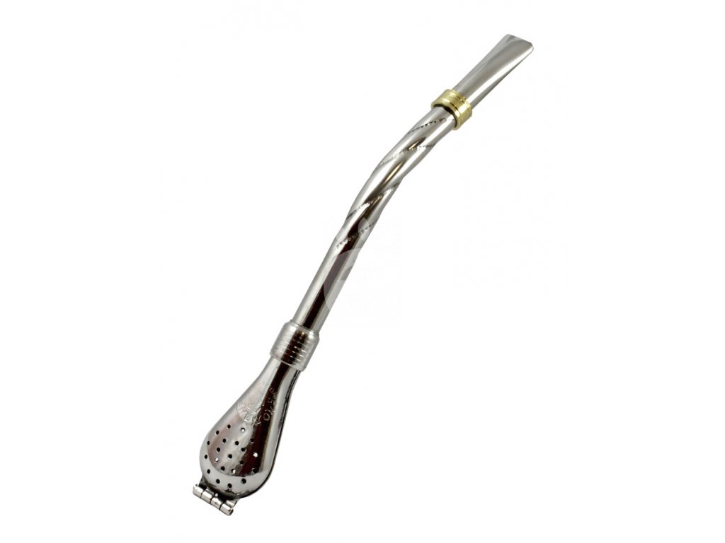 Bombilla o délce 15 cm, průměr lžičky 2 cm, zdobená pozlaceným chladičem. Násoska je točená a zdobená tečkováním. Bombilla je rozebiratelná. Svou délkou je vhodná ke kalabasám menším.