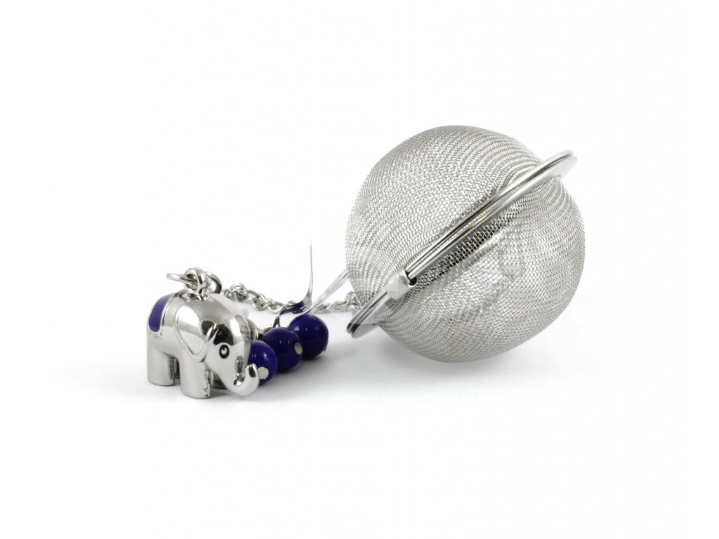 Čajové sítko kulaté s přívěskem ve tvaru slona. Sítko má průměr cca 5 cm. Vhodné do hrnku, použijte pro pravý čaj nebo bylinky, které jsou nadrcené.