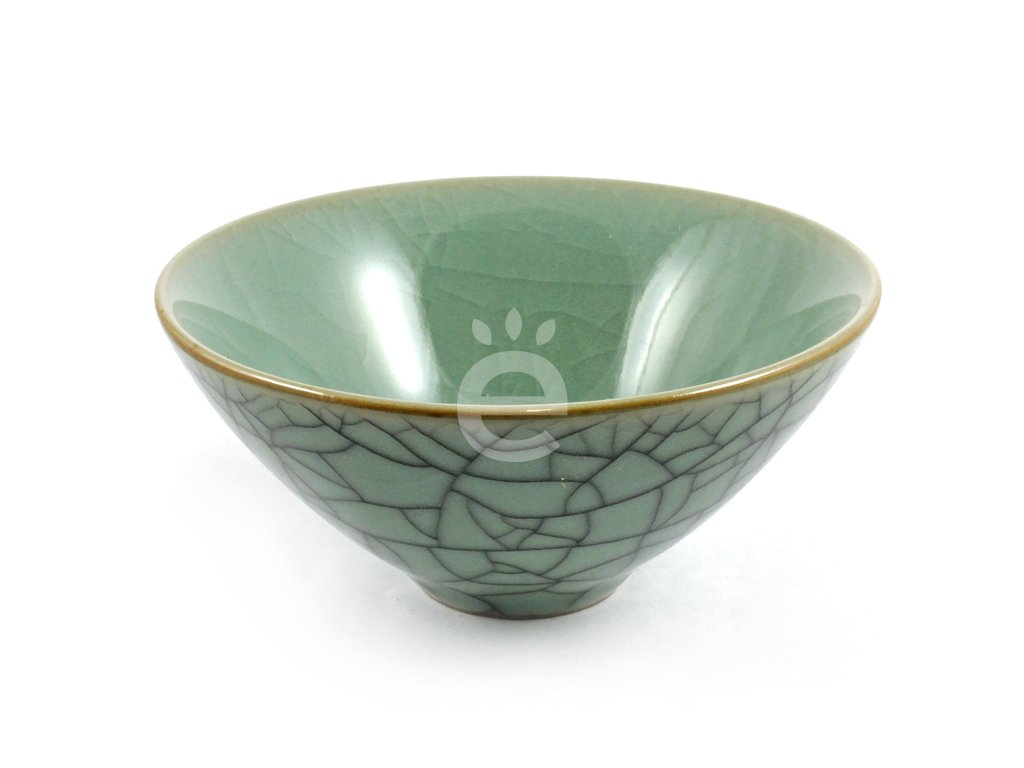 Glazovaná miska na čaj. Jemné prasklinky v glazuře se postupně ještě více zvýrazní. Celadon je tradiční typ bledě zelené (olivové ) glazury, často s jemnými prasklinkami, známý od 5. století.