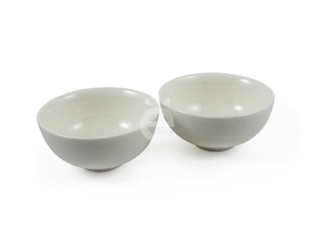 Jednoduchý, porcelánový, bílý šálek na přípravu čaje.