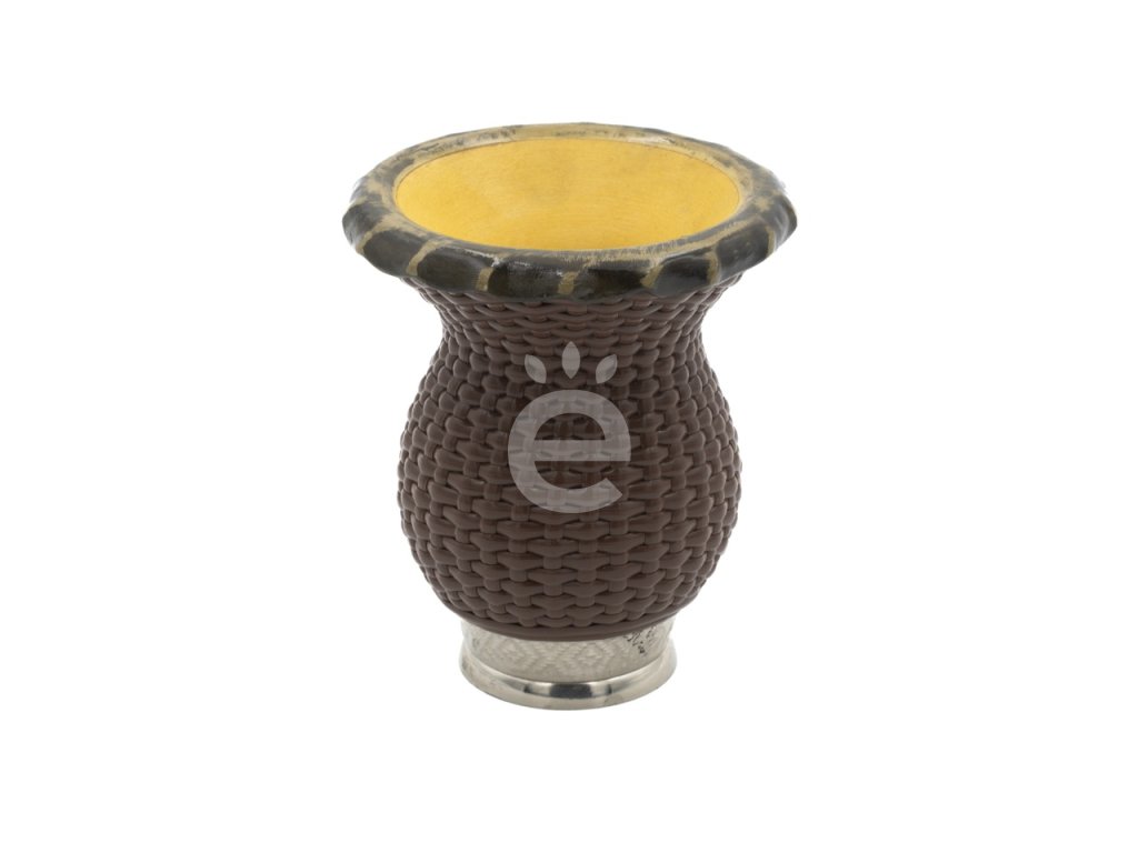Díky svému typickému tvaru a širokému hrdlu je cuia ideální pro přípravu zeleného prachového maté, tzv. chimarrão. Ruční výroba, unikátní design, kombinace tradice a praktičnosti. Plastový “proutěný” plášť zajistí lepší odolnost nádoby, kovový podstavec je krásným designovým prvkem, který ji dodá kromě větší stability i originalitu a styl.