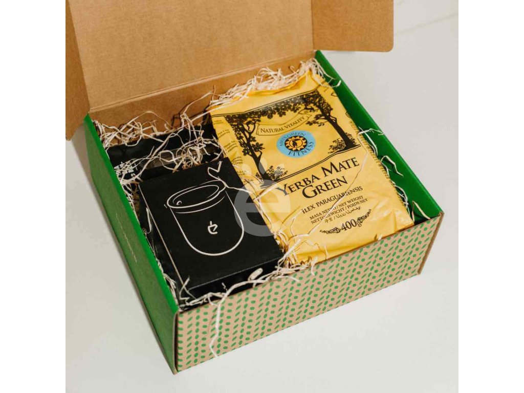 Tento dárkový box spojuje lehké a svěží Mate Green Fitness 400 g a praktickou sadu Un Mate – černou nerezovou kalabasu, bombillu a čisticí štěteček. V jedné dárkové krabici najdete kompletní výbavu pro přípravu yerba maté tradičním způsobem. Box je vhodný jako dárek, ale i jako jednoduchý startovní set pro každodenní popíjení.