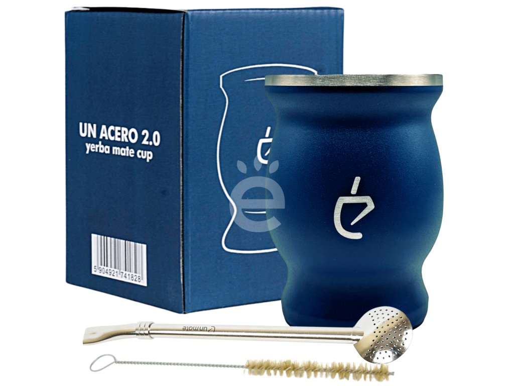 Sada Un Mate Wave obsahuje dvoustěnnou nerezovou kalabasu v modré barvě, nerezovou bombillu a čisticí štěteček. Kalabasa drží teplotu nápoje, dobře se udržuje a je vhodná pro každodenní pití. Bombilla s jemným filtrem zvládne i jemnější řez.