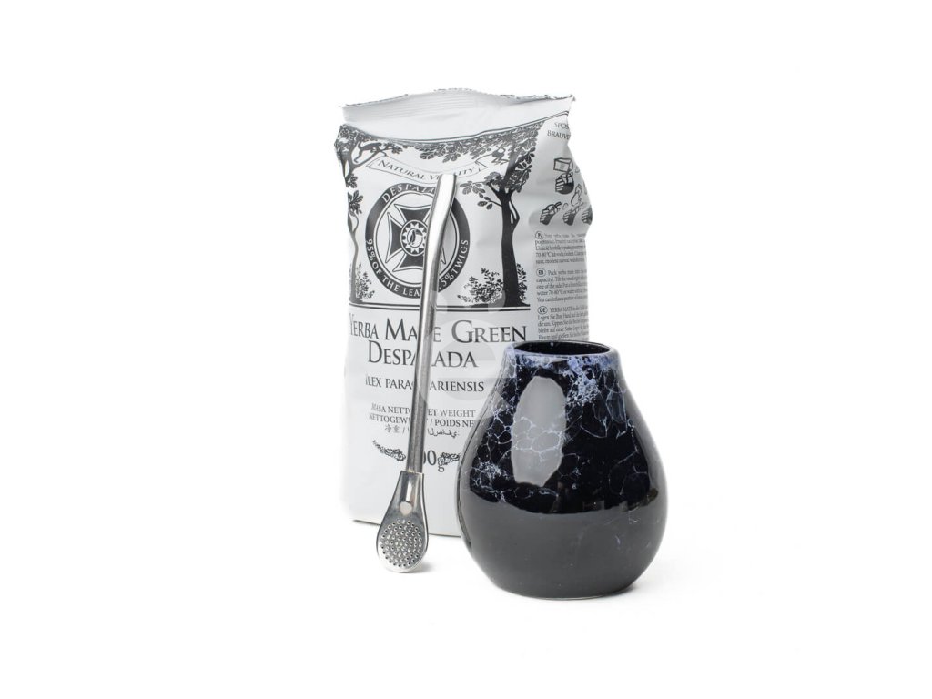 Set obsahuje Mate green Despalada Intenso 400 g, keramickou kalabasu a jednoduchou nerozebíratelnou bombillu.