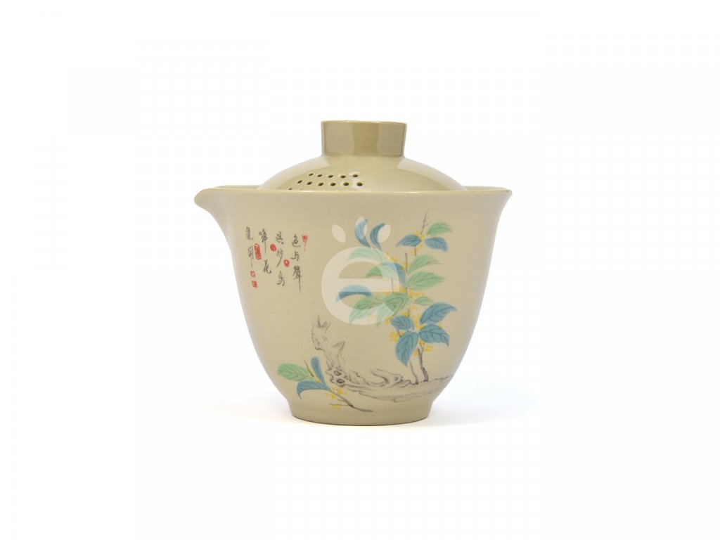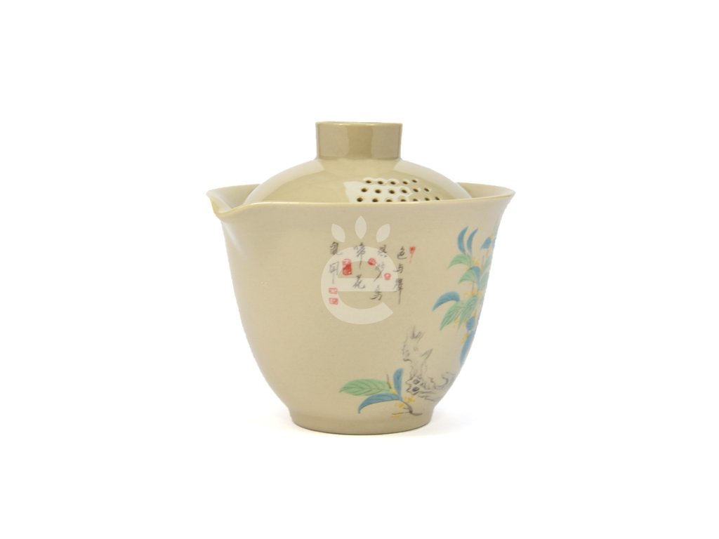Gaiwan (Zhong) bez podšálku s jemým sítkem ve víčku. Dekor čajovníku. Prastará technika popelové glazury v moderním pojetí.