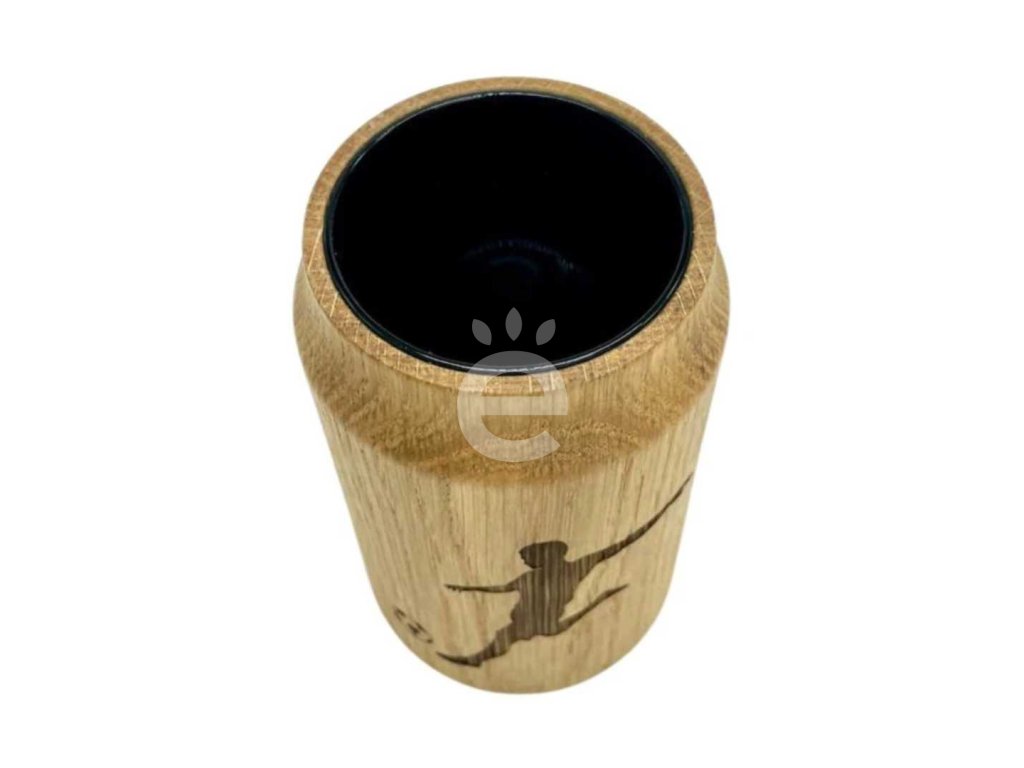 Unikátní design, precizní provedení a fantastická kombinace dřeva a skla. Dřevo zajišťuje příjemné držení a skvělou tepelnou izolaci, díky skleněnému vnitřku se pak nádoba snadno čistí.