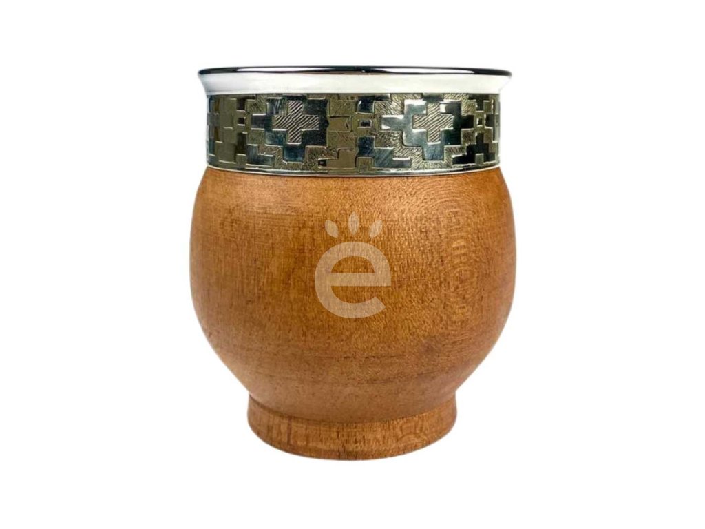 Ručně vyráběná kalabasa z ušlechtilého dřeva algarrobo, doplněná o elegantní alpaku (niklová slitina) a nerezový lem.