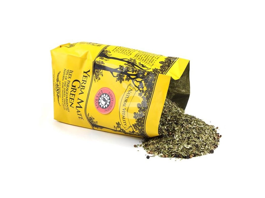 - Složení: 91% Yerba maté a 9% přísady (kořen sibiřského ženšenu, camu camu v prášku, černý bez, přeslička polní, zelený čaj Gunpowder, plody koriandru, přírodní aroma) v různých poměrech