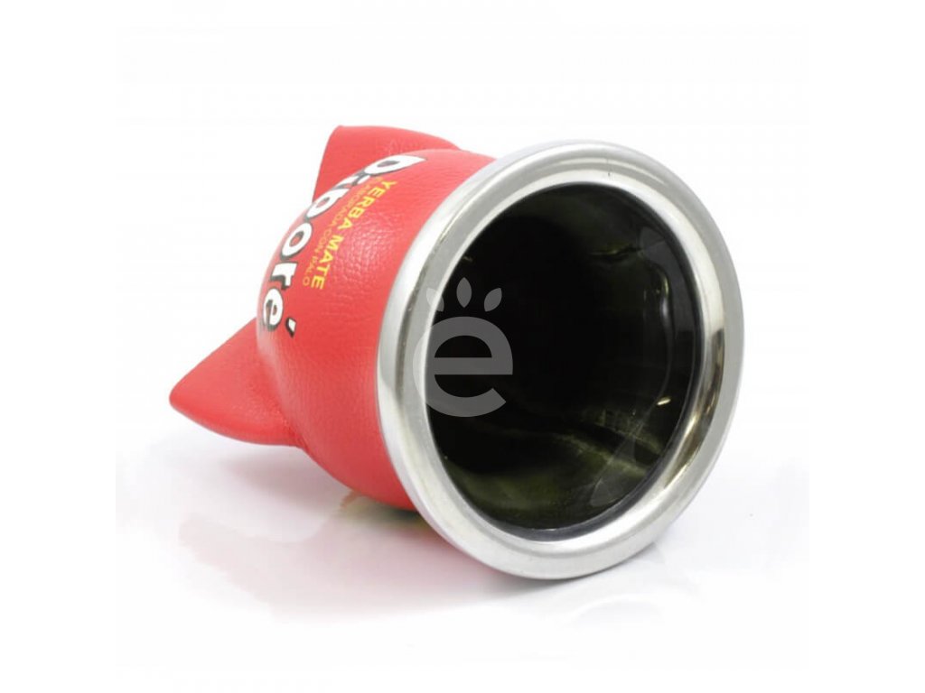 Nádobka ze skla na přípravu yerba maté o objemu cca 200 ml. Nádobka je potažená umělou kůží s vyraženým logem značky Piporé.