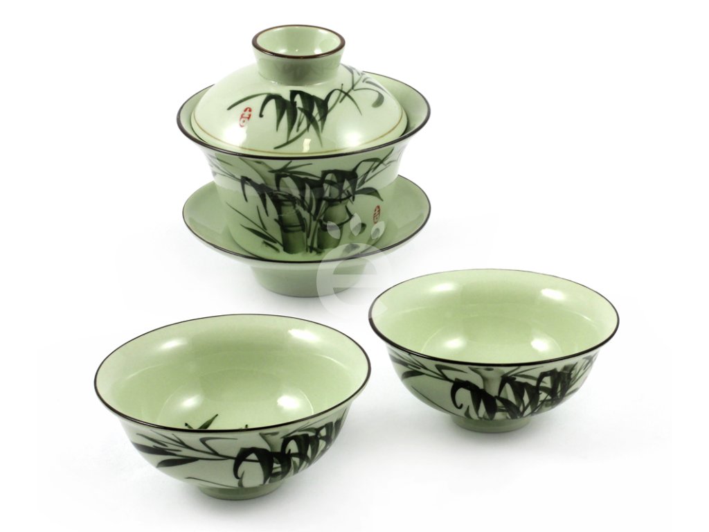 Porcelánový čajový šálek. Tradiční dekor bambusu.