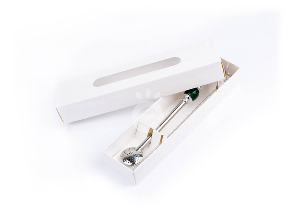 Bombilla s hnědožlutým kamenem o délce 21 cm z nerezové oceli + štěteček na čištění v krabičce.