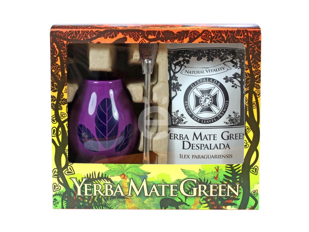 Set - Mate Green Despalada 400 g, bombilla, fialová kalabasa s lístky