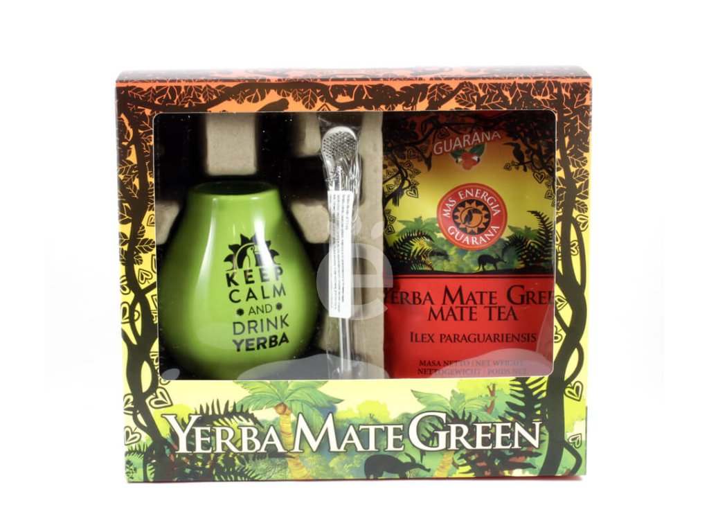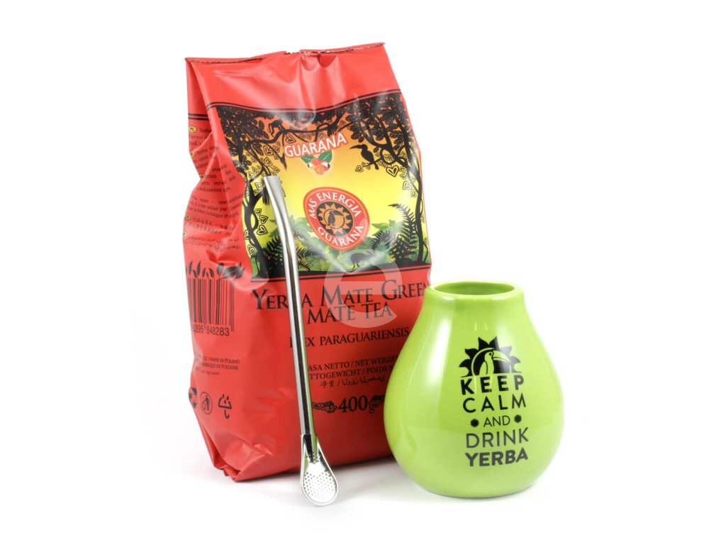Set obsahuje Mate green Guarana 400 g, keramickou kalabasu a jednoduchou nerozebiratelnou bombillu.