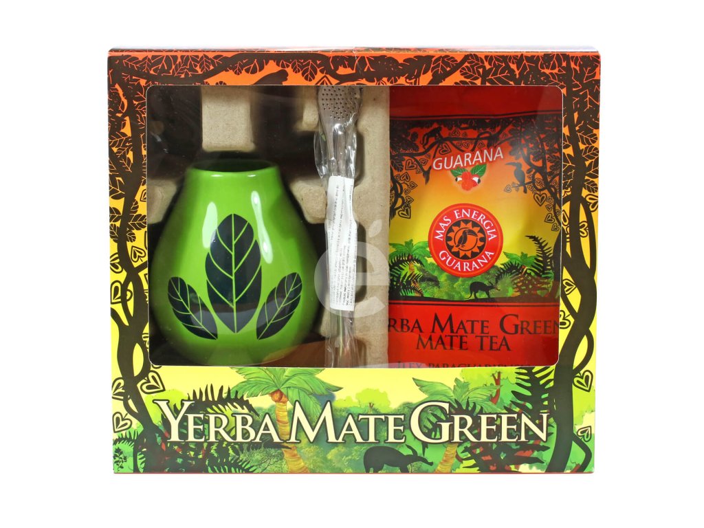 Set obsahuje Mate green Más Energia Guarana 400 g, keramickou kalabasu a jednoduchou nerozebiratelnou bombillu.