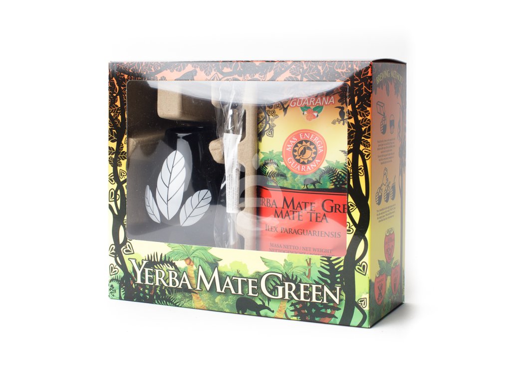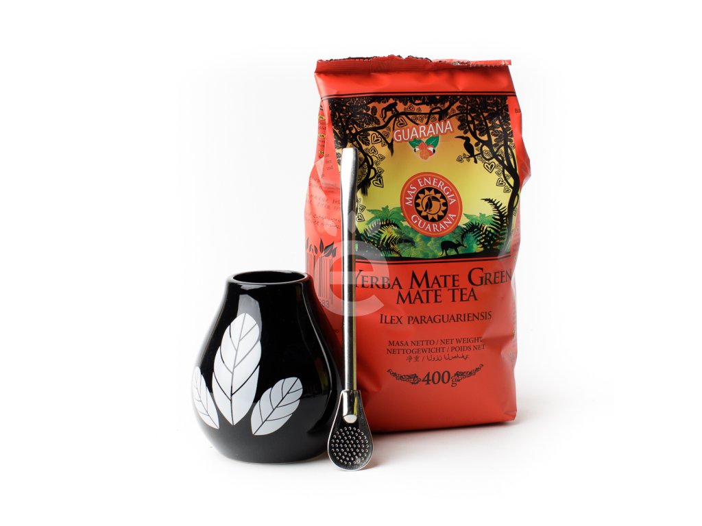 Set - Mate Green Mas Energia Guarana, bombilla, černá kalabasa s lístky