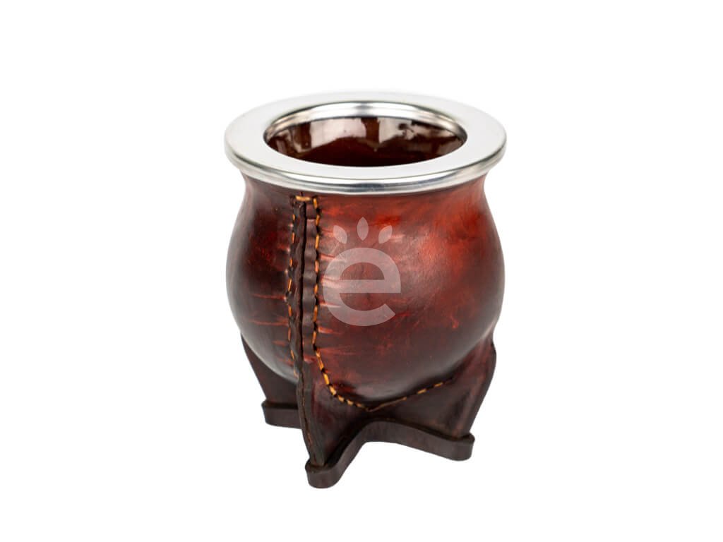 Keramická kalabasa typu Camionero o objemu 200 ml, s hladkým vnějším povrchem z pečlivě sešité kůže, doplněné lesklým nerezovým okrajem.
